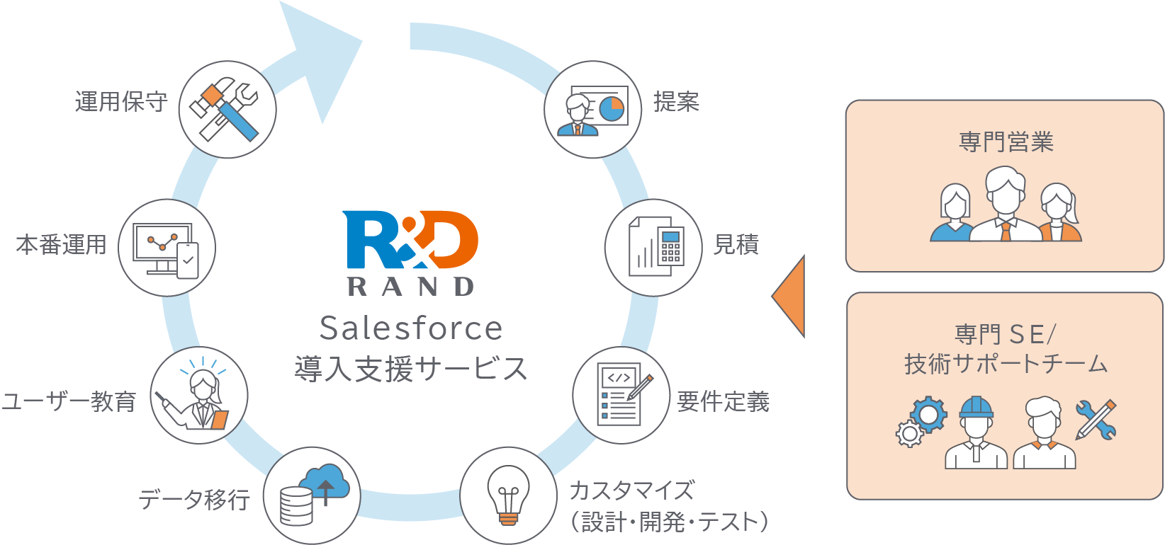 メンバー全員がSalesforceの認定資格を保持しています。各製品に精通したエンジニア、コンサルタントが導入支援します。